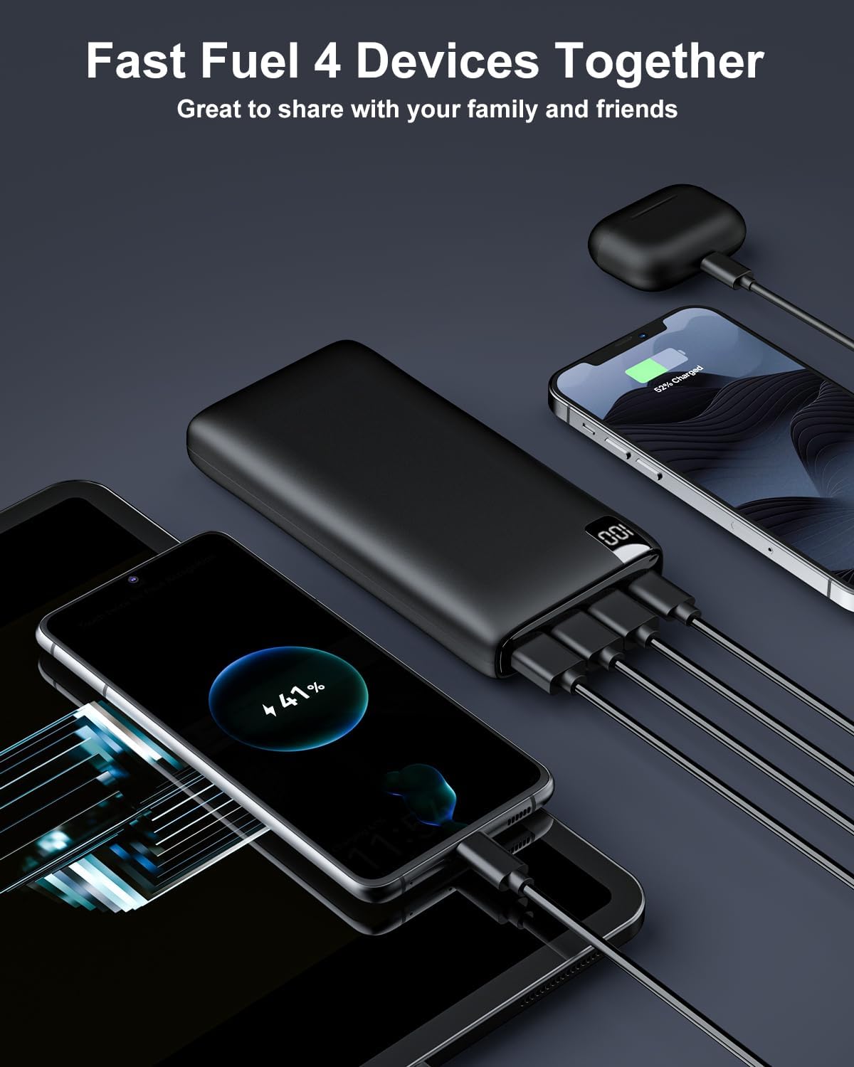 Equipped with a convenient LED display, you can easily monitor the remaining power level of the power bank, ensuring you are always prepared for any situation. The IXNINE Power Bank features 4 USB outputs, allowing you to charge multiple devices simultaneously without any compromise on speed or performance.